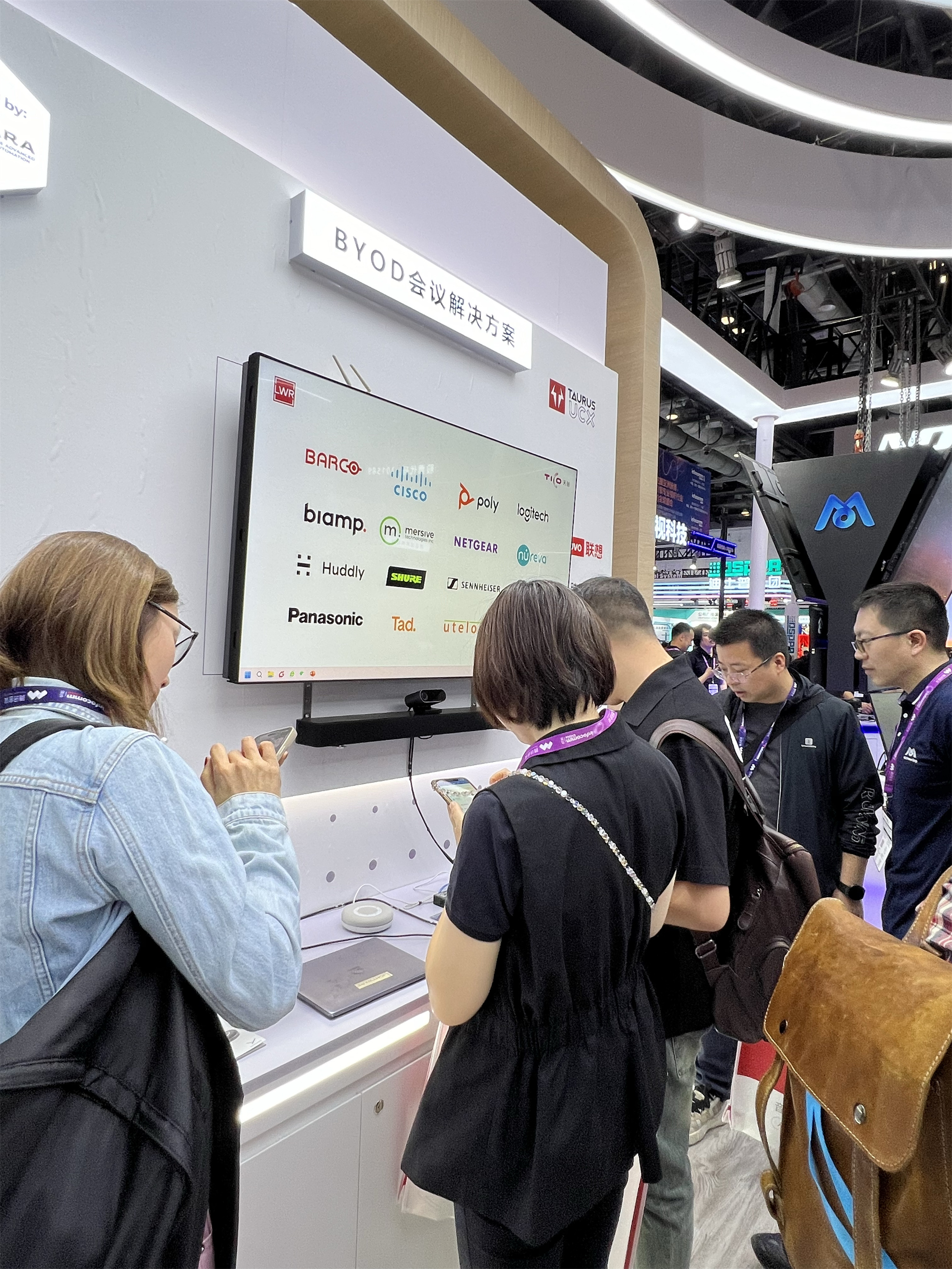 而在BYOD會議解決方案區(qū), Lenovo ThinkSmart Core Full Room Kit與Lightware Taurus UCX 系列完美集成,為用戶提供了BYOD和BYOM應(yīng)用的全新思路。基于USB-C技術(shù),Taurus UCX可通過一根線纜支持4K視頻、音頻、USB host切換、USB HUB、網(wǎng)絡(luò)、控制信號以及供電傳輸,實(shí)現(xiàn)個(gè)人電腦接入會議,以及自帶會議功能。