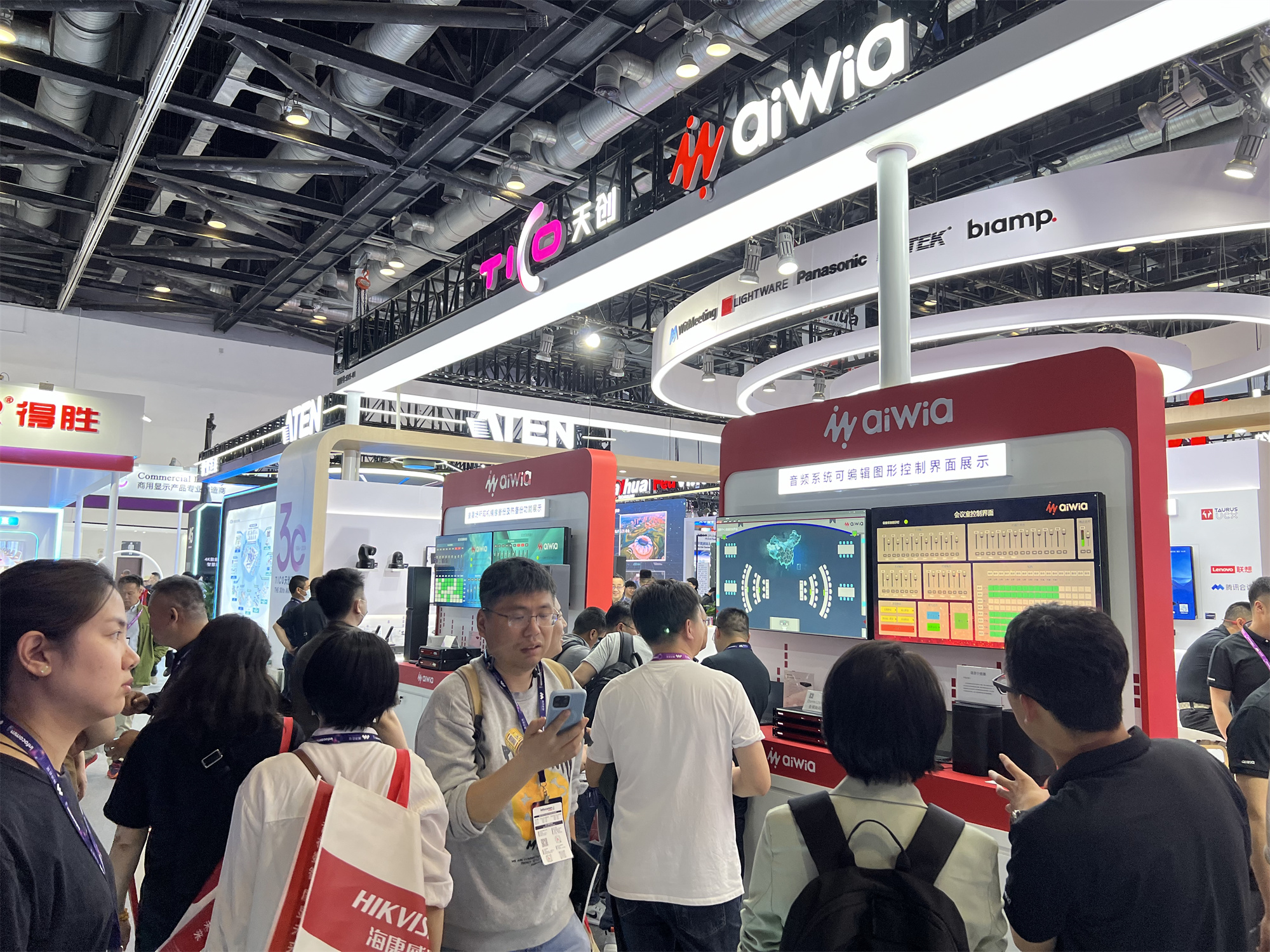 Biamp全面呈現(xiàn)了其全生態(tài)產(chǎn)品線,為從小型到大型的各種場所提供了豐富的解決方案。從傳統(tǒng)的數(shù)字DSP處理平臺、會議室固定安裝多類型揚(yáng)聲器、中控系統(tǒng),到各種UC周邊產(chǎn)品的展示;從波束跟蹤技術(shù)、AI智能深度降噪技術(shù),到Launch自動調(diào)試技術(shù),均能得到參觀者的共情。