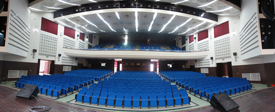 中國人民公安大學(xué)禮堂本次改造即在原擴(kuò)聲基礎(chǔ)上加裝兩組點(diǎn)聲源陣列音箱、低音音箱,增加數(shù)字調(diào)音臺(tái)及AVIOM舞臺(tái)信號(hào)傳輸系統(tǒng),另外增加數(shù)字處理器系統(tǒng)。公安大學(xué)的報(bào)告廳,為帶二層樓座的階梯式、鏡框舞臺(tái)報(bào)告廳,為標(biāo)準(zhǔn)的老式禮堂,比較有特點(diǎn)的是二層樓座進(jìn)深比較大,坐席與一層類似,因此明顯擴(kuò)聲距離較遠(yuǎn),非常適合點(diǎn)聲源陣列音箱的擴(kuò)聲覆蓋。另外增加了數(shù)字調(diào)音臺(tái),需要與目前的模擬調(diào)音臺(tái)進(jìn)行對(duì)接,實(shí)現(xiàn)調(diào)音臺(tái)互為備份的要求。