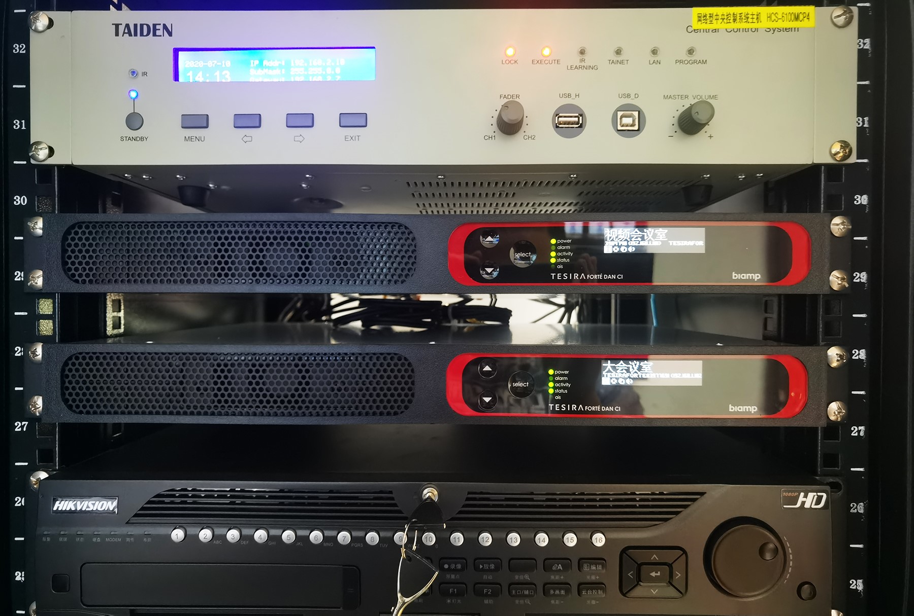 系統(tǒng)選用了Biamp TesiraFORTé DAN CI數(shù)字音頻處理器作為核心處理設備。采用Biamp 專利技術的自動增益控制、自動反饋抑制、自動增益共享混音器和常規(guī)信號處理模塊,對音頻信號進行均衡,延時,路由等??纱_保音頻信號質量,達到電信級設備標準,保障會議正常進行。同時,Biamp獨有的回聲消除技術AEC可以輕松解決遠端回聲問題,從而大幅提升了擴聲清晰度以及會議效率。