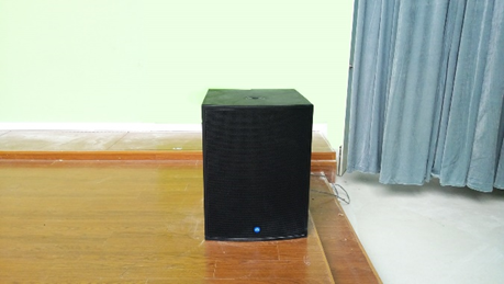 黑盒劇場整個房間均被涂黑,沒有做室內布置,可根據(jù)實際需求安排座椅或搭建舞臺。系統(tǒng)配置了4只Renkus-Heinz CX81揚聲器作為主擴揚聲器,選擇小角度兩兩一組吊掛安裝于投影幕兩側。由于房間層高較低,且前排安裝了一整排面光燈,遮擋了主擴揚聲器的大部分聲音。針對以上場地造成的缺陷,天創(chuàng)技術工程師結合現(xiàn)場條件,將原有面光燈位置和揚聲器位置相互置換,并依據(jù)房間大小及擴聲區(qū)域合理調整揚聲器角度,使主擴揚聲器的聲音能正常傳播且不被遮擋??紤]到黑盒劇場要兼顧演出需求,系統(tǒng)還配置了2只Renkus-Heinz CX系列超低揚聲器,用于擴展低頻下限。