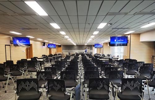 由于整棟大樓的外墻是玻璃面,大部分房間都有一整面的玻璃,決定了廳堂本身的聲學(xué)環(huán)境不佳。天創(chuàng)工程師根據(jù)每種房間自身的特點(diǎn),選擇了不同的擴(kuò)聲方式。多功能廳和培訓(xùn)室采用了主擴(kuò)配合輔助揚(yáng)聲器的擴(kuò)聲方式,會議室則采用了主擴(kuò)加天花的方式。接待室要求滿足全場的聲場均勻度,選擇了SoundTube CM62-EZ-II-WH高品質(zhì)同軸天花揚(yáng)聲器進(jìn)行擴(kuò)聲。