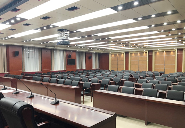 山東棗莊機關(guān)招待所項目涉及的區(qū)域為一間報告廳,以及一間會議室。要求滿足日常會議需求的同時,在控制室可以對兩個房間進(jìn)行統(tǒng)一管理,所以房間之間需要互聯(lián)互通。