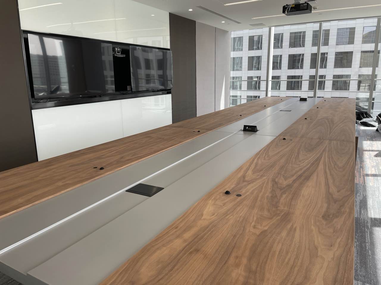 一重集團(tuán)會議室定位為高端會議室,要求設(shè)備具備先進(jìn)性和簡潔性,同時桌面上要盡量干凈整潔。為了滿足以上需求,系統(tǒng)配置了一套beyerdynamic Orbis系列暗藏式的數(shù)字手拉手會議系統(tǒng)。