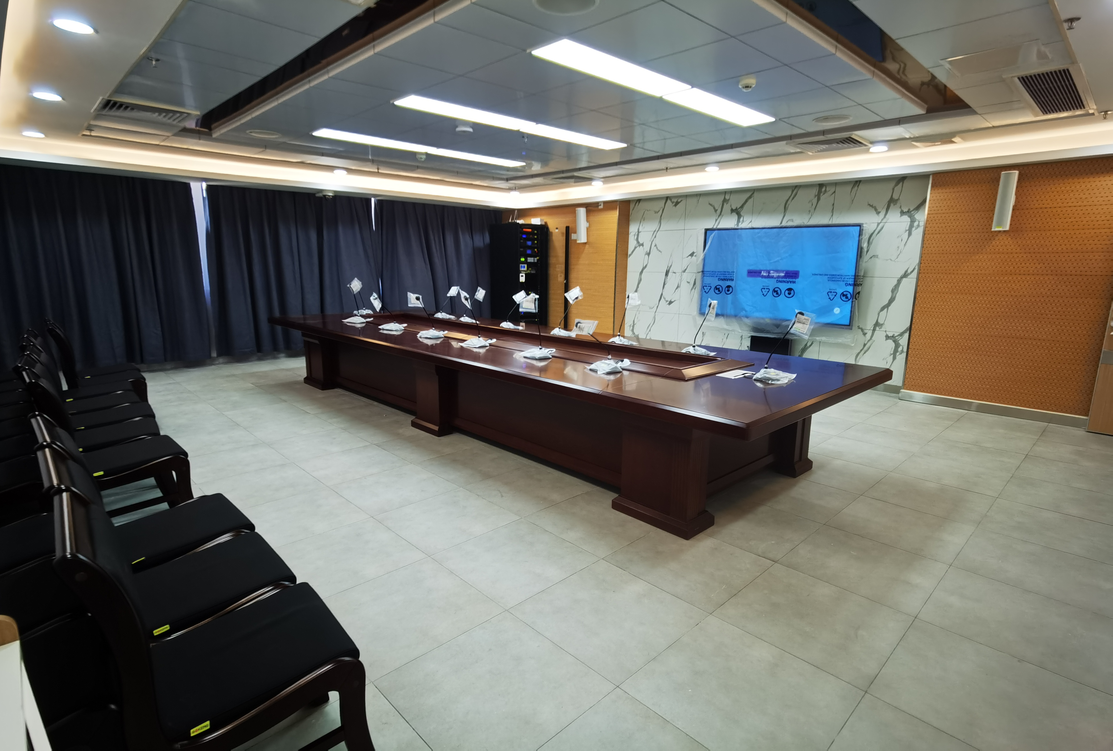 會(huì)議室主要進(jìn)行本地會(huì)議和遠(yuǎn)程會(huì)議,空間采用主擴(kuò)音箱加吸頂音箱方式,主擴(kuò)音箱選用的 Biamp Desono ENT206,示教室主要進(jìn)行培訓(xùn)和遠(yuǎn)程示教,示教室也是采用主擴(kuò)音箱加吸頂音箱方式,主擴(kuò)用的Biamp Desono DS8,多功能廳主要作為大型會(huì)議和小型演出的場(chǎng)所,采用了V系列全頻音箱,具有低頻震撼,中頻飽滿,高音洪亮等特點(diǎn),設(shè)置左中右主擴(kuò)加輔助、返聽和低音的方式進(jìn)行擴(kuò)聲。